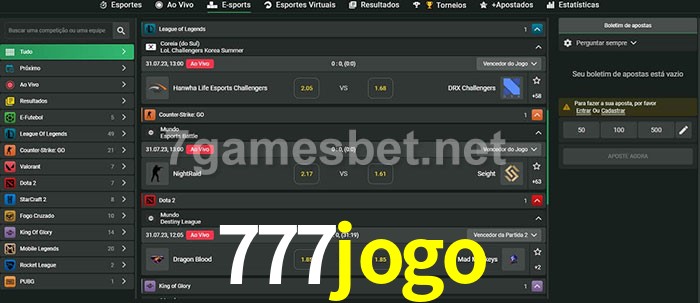 O 777jogo oferece uma grande seleção de opções de apostas em e-sports com probabilidades competitivas